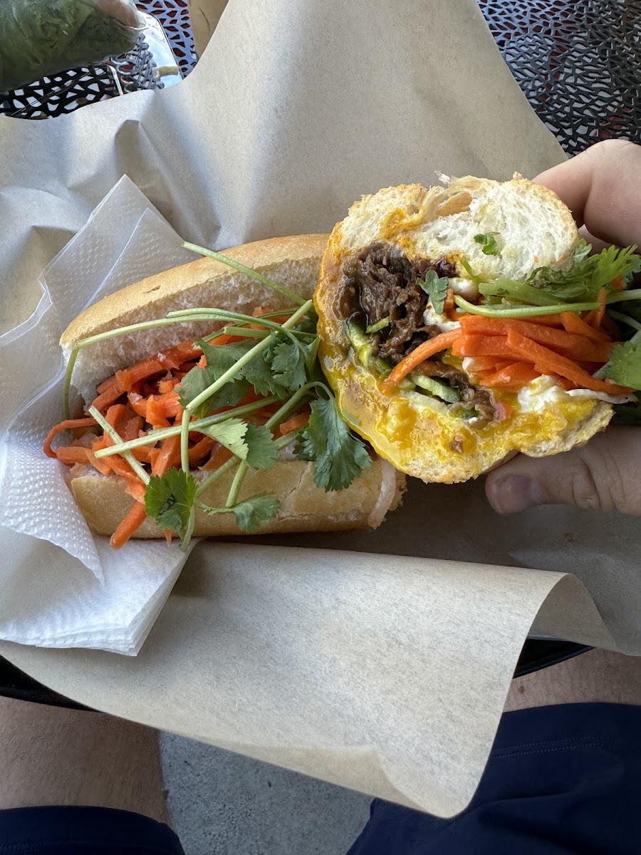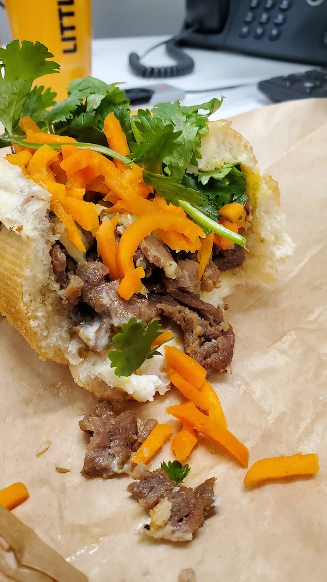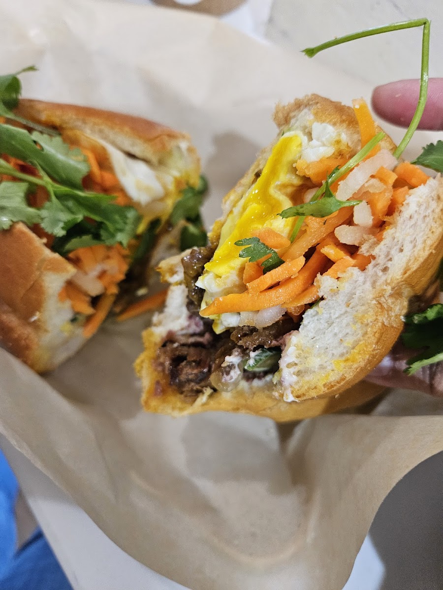 If you're looking for a sandwich that embodies Vietnamese culinary tradition, their Banh Mi offerings are sure to impress. The Crispy Lemongrass Fish Banh Mi ($11.50) features wild-caught fish packed in a toasted French roll, complemented by the tangy crunch of pickled carrots and daikon. Pro tip: Enhance your experience by adding Little V's “Peter Special” sauce and a fried egg for an extra kick of deliciousness. Another highlight is the Lemongrass Beef Banh Mi, a crowd favorite that is equally as tasty.
